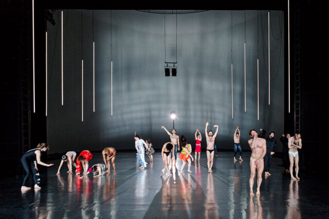 Cette pièce grandiose rassemble un casting somptueux de vingt danseurs sur le Requiem de Mozart. Comme si c’était la fin du monde et qu’il fallait une dernière danse. Une danse d’après tout. En urgence vitale. Dans cette pièce polyphonique, chacun joue sa partition, taillant sa singularité dans les costumes disparates signés Jean-Paul Lespagnard, du plus simple au plus sophistiqué. C’est toute une humanité exubérante, débordante, qui, quand elle se rassemble, traverse l’histoire de l’art dans ses emboîtements fugaces, et quand elle ralentit, transcende l’éphémère beauté de la danse et de la vie.
