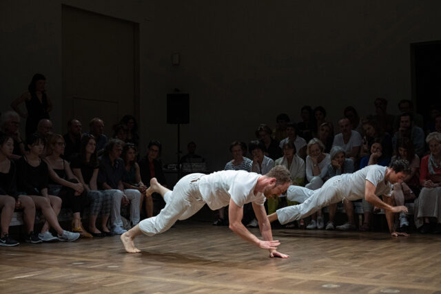 À bras-le-corps, créé par Boris Charmatz et Dimitri Chamblas, est un duo culte. Ce duo protéiforme n’a jamais cessé d’évoluer tout en conservant ses fondamentaux, à savoir deux hommes qui se défient dans une gestuelle profondément masculine.