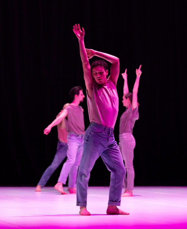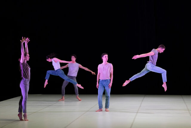 C’est sur la musique électroacoustique de Gerome Nox que Michèle Murray célèbre la notion même de danse en groupe pour parler des corps de notre époque et des histoires qu’ils racontent, entre pluralité et singularité. Sauts, arabesques, géométrie impeccable des lignes, énergie clubbing marqueur de la jeunesse de nos sociétés occidentalisées… : grâce à la précision de l’écriture spatiale et de l’organisation décentralisée de la scène – notons que la chorégraphe est passée par le studio de Merce Cunningham – l’espace est dynamique et la pièce un hymne à la vie et à la joie.