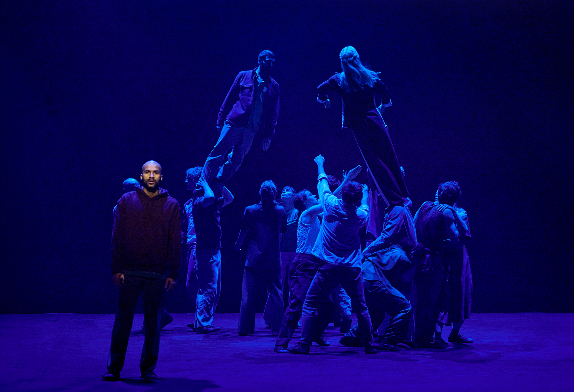 D’une physicalité impressionnante, aérienne, athlétique, telle est We Loved Each Other So Much de Yoann Bourgeois. Avec cette pièce créée pour le GöteborgsOperans Danskompani, il déploie tout son vocabulaire voltigeant et rebondissant, fait de contrepoids et de points de suspension. Précipitant ces dix-sept danseurs dans un espace scénique presque sidéral, en tout cas, sidérant par leur virtuosité extrême, la pièce nous rappelle l’urgence de vivre pleinement. Performance énergétique de tous les instants, les danseurs mettent à l’épreuve des voies paroxystiques du mouvement. Quête insatiable du dépassement de soi, We Loved Each Other So Much (Nous nous sommes tant aimés), nous plonge dans la recherche d’une présence invisible. L’amour peut-être ?