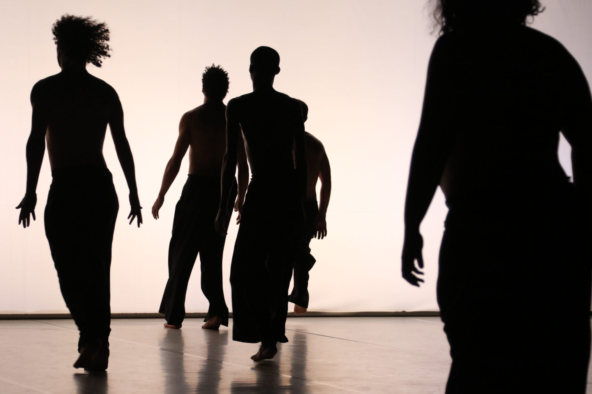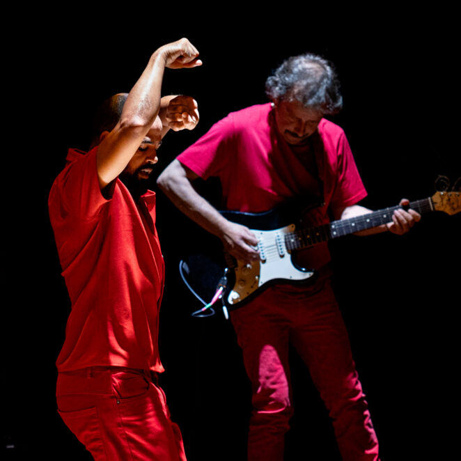 Hmadcha est le premier volet de la trilogie. Son titre s’inspire de la confrérie soufie du même nom, qui met au cœur de sa pratique la percussion et le souffle, la danse et la poésie. À la différence des derviches, ils ne tournent pas, ils sautent, consumant leur oxygène dans leur quête d’une ivresse propice au dépassement de soi et à l’étourdissement de l’être. Cette danse de l’épuisement, portée par neuf danseurs, s’attelle à retrouver le souffle primordial d’un art banni par la pandémie, à faire corps avec son corps. Taoufiq Izeddiou touche à la transcendance comme essence de la danse, cet inconnu habitant nos âmes qui cherche à rendre visible l’invisible. Mais Hmadcha est aussi une pièce manifeste, pour démontrer qu’au-delà de l’arrêt imposé par la pandémie, la danse contemporaine a survécu au Maroc et dans le monde !
