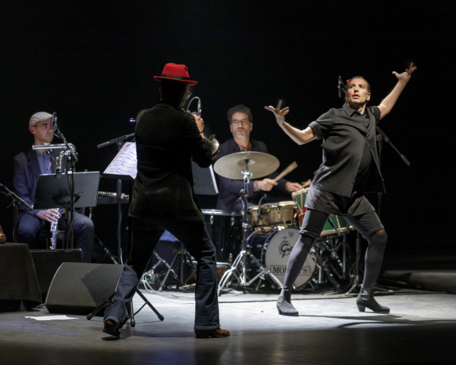 L’Espagne que, à New York en 1960, Miles Davis et Gil Evans avaient gravée dans un album jazz révolutionnaire, Sketches of Spain, rentre enfin chez elle, dans la splendeur du flamenco épuré d’Israel Galván. La danse surnaturelle du chorégraphe et danseur dont l’influence, dès ses premières pièces, a dynamité les frontières traditionnelles, fusionne avec la trompette de Michael Leonhart, autre artiste passé maître dans l’innovation. Ils sont accompagnés sur scène par six musiciens exceptionnels. L’arrangement et l’orchestration de Michael Leonhart révèlent clairement le mouvement des rythmes, la pureté des mélodies, la force des gammes arabes anciennes qui creusent, plient et se tordent dans l’âme comme un « blues andalou ».