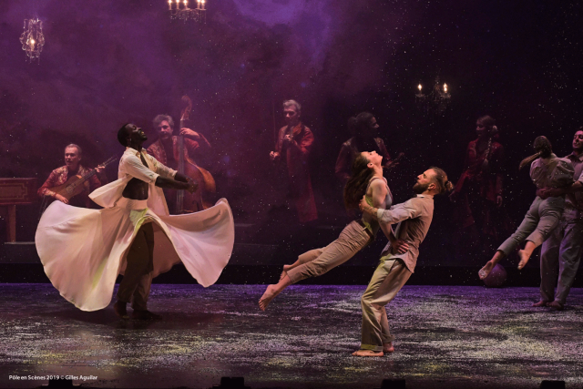 Grâce aux années qui s’écoulent sous nos yeux, nous pouvons voir évoluer le style qui s’est affirmé, affiné, singularisé jusqu’à engendrer une nouvelle façon d’aborder le hip hop s’emparant de toutes sortes d’influences pour créer un vocabulaire unique, celui d’un auteur à part entière. Des effets de fondus-enchaînés lumineux ou gestuels ; des changements de décor à vue – mais aussi subreptices– ; des chutes bruyantes et amusantes de tapis signifiant la fin d’un acte ou des glissements insoupçonnables d’une pièce à l’autre permettent de se laisser emporter par la prouesse physique, des moments suspendus et très oniriques… Tissus de soie légère comme autant de tapis volants répondent à la jupe tournoyante d’un derviche, des danseuses épinglées dans les liens jouent avec l’apesanteur et envoient le hip hop dans les airs.