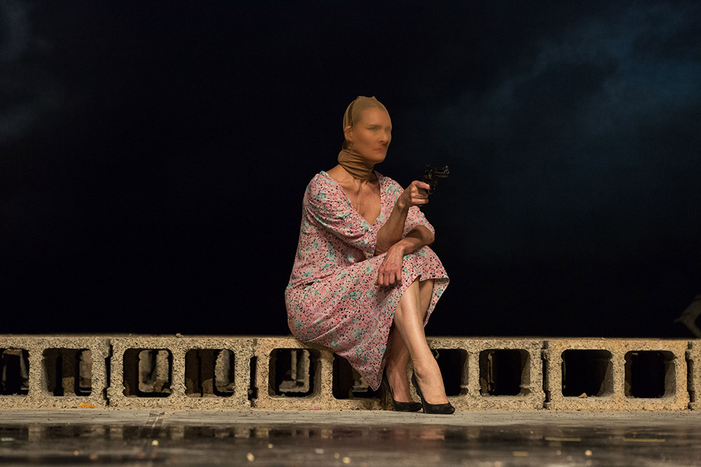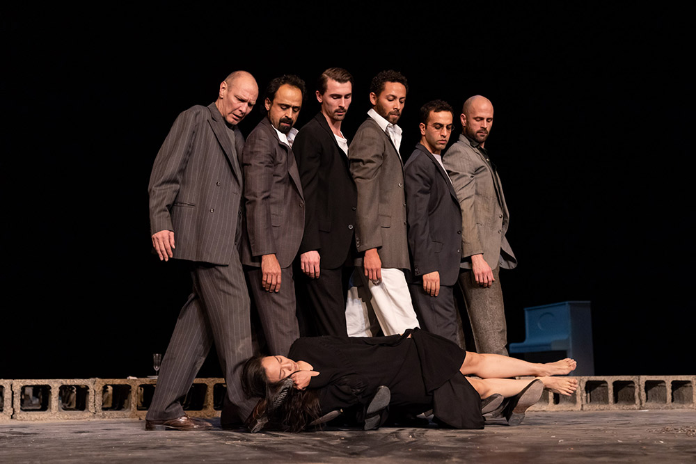 Ce mur qui s’écroule ouvre en fait de nouvelles perspectives. Dans la pièce comme dans le parcours artistique de Pina Bausch. Quand le nuage de poussière se dissipe, apparaissent alors des hommes et des femmes triomphants et blessés, des veuves éplorées, des garçons déboussolés et parfois violents. Chacun des vingt-deux interprètes vient sur le devant de la scène exécuter son numéro, le plus souvent absurde, des gags laissant place à un humour tendre et triste. Sable rose, déchets divers, chant des cigales et cloches palermitaines ouvrent un espace de réminiscences fait de textures, de bruits, d’odeurs.